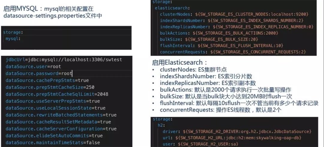 2. Storage:Skywalking的存储,时间更迭,sw已经开发迭代到了6.x版本,在6.x版本中支持以ElasticSearch、Mysql、TiDB、H2、作为存储介质进行数据存储。