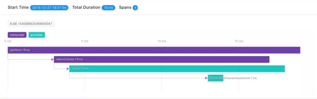 • span1 /getStore = 19ms 响应的总流转时间