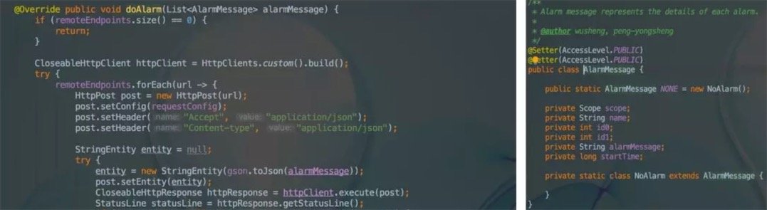 Skywalking通过HttpClient的方式远程调用在配置项webhooks中定义的告警通知服务地址。