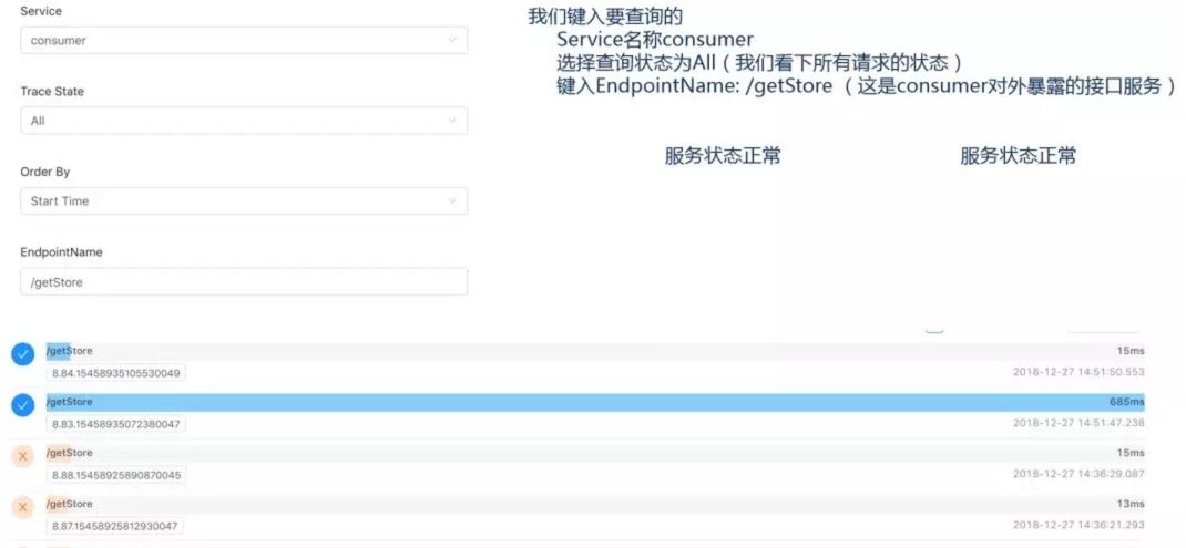 实际情况是,我把服务方停掉了,做了一次简单的模拟。可见,通过拓扑图示我们可以清晰的看到众多服务中哪个服务是出现了问题的,通过trace日志我们可以很快就定位到问题所在,在最短的时间内解决问题。